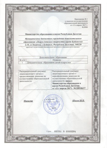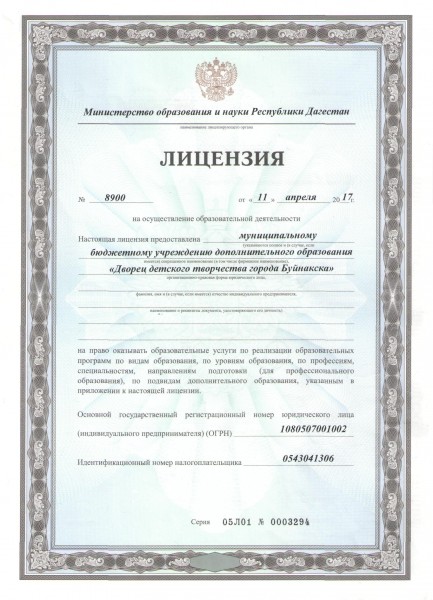 | Полное наименование образовательной организации* | Муниципальное бюджетное учреждение дополнительного образования "Дворец детского творчества города Буйнакска" |