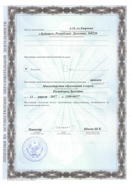 | Адрес местонахождения образовательной организации* | 368220, Республика Дагестан, город Буйнакск, улица Хизроева, 18 |